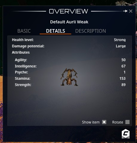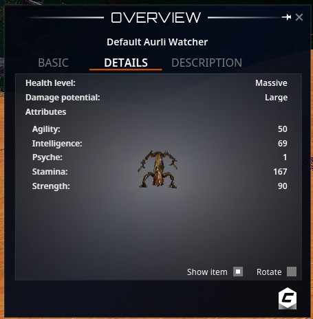 Aurli Watcher | 41 | 1670 | | Stab / Cut / Impact / Acid | Scan | Dome 1 |